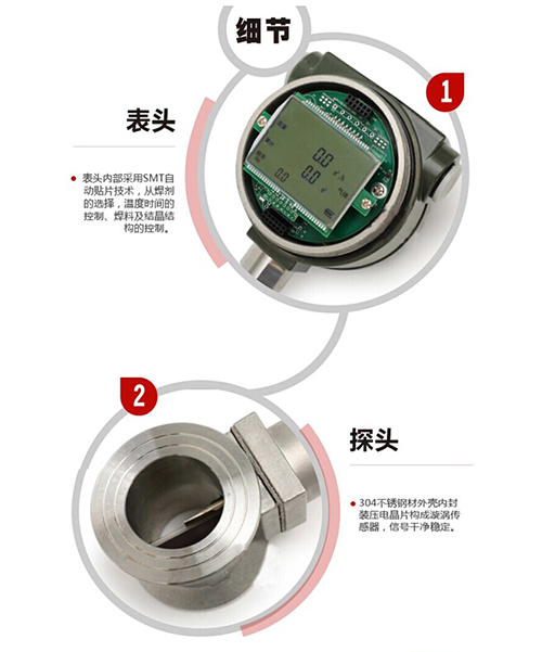 這些交替變化的旋渦就形成了一系列交替變化的負(fù)壓力,該壓力作用在檢測探頭上,便產(chǎn)生一系列交變電信號(hào),經(jīng)過前置放大器轉(zhuǎn)換、整形、放大處理后,輸出與旋渦同步成正比的脈沖頻率信號(hào)或標(biāo)準(zhǔn)信號(hào)。