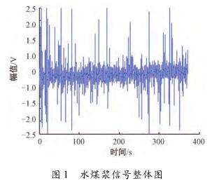 針對(duì)城市生活污水流量計(jì)測(cè)量水煤漿時(shí)出現(xiàn)較大波動(dòng),甚至回零這一問題,特去某煤化工企業(yè)甲醇分公司進(jìn)行現(xiàn)場(chǎng)數(shù)據(jù)采集。該公司所使用的對(duì)置式四噴嘴氣化有4個(gè)噴嘴,噴嘴管道口徑為125mm,管中水煤漿流量基本穩(wěn)定在19m³/h(流速約為0.48m/s)。每條噴嘴煤漿線上安裝了3臺(tái)城市生活污水流量計(jì),每臺(tái)城市生活污水流量計(jì)由傳感器和變送器兩部分組成。選擇其中1條水煤漿管線上的1臺(tái)城市生活污水流量計(jì)進(jìn)行數(shù)據(jù)采集,因?yàn)樵撆_(tái)城市生活污水流量計(jì)測(cè)量結(jié)果波動(dòng)大,甚至出現(xiàn)回零的現(xiàn)象。將課題組研制的基于DSP的電磁流量變送器的信號(hào)線和勵(lì)磁線接到該電磁流量傳感器的電極和勵(lì)磁線圈上,組合成完整的城市生活污水流量計(jì),進(jìn)行水煤漿數(shù)據(jù)采集。使用的電磁流量變送器是以TI公司DSP芯片TMS320F28335為核心,采用高頻勵(lì)磁方案,其硬件主要包括勵(lì)磁控制系統(tǒng)和信號(hào)采集處理系統(tǒng),具體的模塊有勵(lì)磁驅(qū)動(dòng)模塊、信號(hào)調(diào)理采集模塊、信號(hào)處理控制模塊、人機(jī)接口模塊、通信模塊及電源管理模塊。信號(hào)調(diào)理采集模塊中的調(diào)理電路對(duì)一次儀表輸出的信號(hào)進(jìn)行放大和濾波,截止頻率是2kHz,放大倍數(shù)約為230倍。通過NI公司USB-6216型號(hào)的數(shù)據(jù)采集卡進(jìn)行數(shù)據(jù)采集,把調(diào)理電路的輸出端連接到數(shù)據(jù)采集卡的一個(gè)差分輸入端,并設(shè)置數(shù)據(jù)采集卡工作在差分的測(cè)量模式,設(shè)置采集卡的采樣頻率為10kHz。采集多組水煤漿信號(hào)數(shù)據(jù),每組數(shù)據(jù)的時(shí)間長(zhǎng)度為5min。