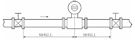管道熱水流量計的安裝質(zhì)量對其測量結果的影響較大,因此在安裝時需要注意幾個問題。*先,管道熱水流量計直管段的選擇在配管時一定要按照要求進行選擇,一般選擇流量計通徑與工藝管道通徑相同,即可滿足工程需要,而且安裝方便、壓力損失小,流量計直管段上游側(cè)的長度不少于5倍工藝管道直徑,下游側(cè)的長度不少于3倍工藝管道直徑(圖2)。但在流速太慢而又要求精度較高或需要變徑的應用場合,可選擇通徑小于工藝管道通徑的流量計,以提高測量精度,此時流量計上、下游必須加裝異徑管,且進口異徑管上游側(cè)應有長于10倍工藝管道直徑的直管段,下游側(cè)應有長于5倍工藝管道直徑的直管段(圖3)。