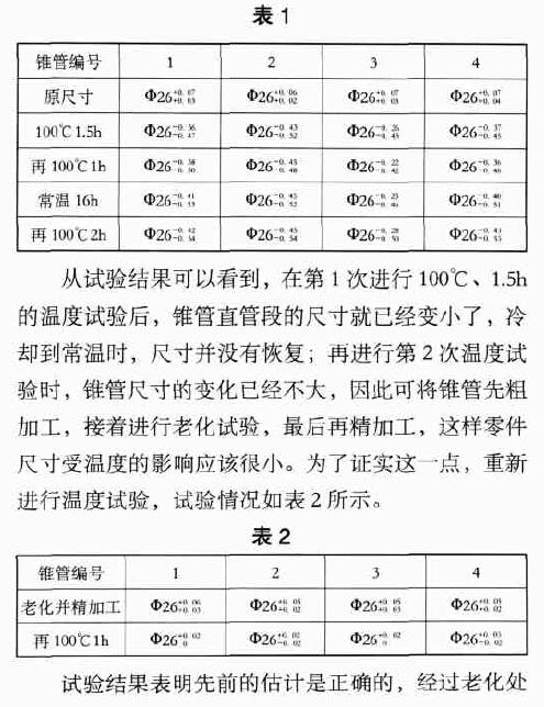 由于錐管老化試驗(yàn)的溫度為100℃,而產(chǎn)品的使用溫度只有70℃,因此按改進(jìn)的工藝加工錐管,必定能滿足產(chǎn)品的設(shè)計(jì)要求。