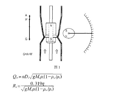 如圖1所示,相對應測量介質的某**量,磁性浮子在測量管中對應一個浮子位置,這個浮子位置通過指示器中的經(jīng)過精密充磁的磁禍合系統(tǒng)帶動指針,由刻度盤和指針讀出相應的流量值。