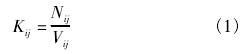 式中:Kij為*i檢定點(diǎn)*j次檢定的儀表系數(shù),L-1或(m3)-1,其中,i=1,2,3,…,m,m為檢定點(diǎn)數(shù),m≥3,j=1,2,3,…,n,n為檢定次數(shù),n≥3;Nij為*i檢定點(diǎn)*j次檢定時(shí)流量計(jì)顯示儀表測(cè)得的脈沖數(shù);Vij為*i檢定點(diǎn)*j次檢定時(shí)標(biāo)準(zhǔn)裝置測(cè)得的實(shí)際流量,L或m3。
