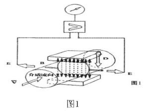 當導電流體經(jīng)傳感器通道時,導電流體流向垂直于磁力線方向,流體流動時切割磁力線,在導電流體中有感應電勢E產(chǎn)生,感應電勢與流速之間的關系式為:E=KBvD