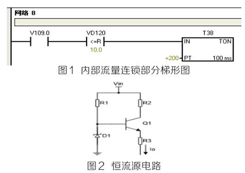 (2)PLC及模塊。PLC及模塊是自動化控制系統主要設備,且PLC及模塊屬于高集成高精密電子設備,保持室內整潔舒適,可以提高自動化系統運行穩(wěn)定性。PLC及模塊硬件運行可靠,內部控制程序是其控制核心軟件,如PLC硬件出現故障或損壞一般直接更換,但原內部控制軟件無法上傳,整個控制系統成失控狀態(tài)。所以其內部控制程序在調試驗收合格后應及時備份并做好標記,為以后修復PLC故障提供保障。PLC系統的維護技術人員需掌握一定基礎PLC控制邏輯原理,對準確判斷PLC故障點有很大的幫助。例如選礦廠水泵房S7-200系列PLC自動抽水系統出現如下故障 :觸摸屏能控制變頻器啟動水泵抽水,但在短時間內會自動停泵,導致無法正常抽水。通過故障現象可初步判斷PLC及模塊硬件設備正常,主要由于某個變量有問題導致連鎖停機。打開備份PLC控制梯形圖程序進行相關分析,原來是水流量計瞬時流量數值做了連鎖,其在一定時間內瞬時流量不大于10m 3 /h時,自動停泵,電磁流量模擬量輸出電流值僅為4ma且無變化,確定水流量計有故障??膳R時應急維修,模擬量模塊輸入模擬電流值10ma~20ma之間一固定數值即可恢復正常運行。制作簡單恒流源電路代替水流量計輸出的模擬電流量,實現解決水泵無法正常運行的故障。