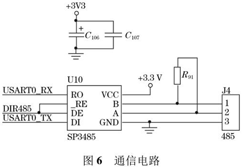 煤焦油流量計(jì)輸出的流量值可以通過(guò)外接的 TFTLCD 屏直接顯示,還可以通過(guò)預(yù)留的 RS485 通信接口將數(shù)據(jù)發(fā)送到上位機(jī)中。RS485 電路*大的優(yōu)點(diǎn)是 485 電平與 TTL 電平兼容,方便與 TTL 電路相連;抗共模干擾能力強(qiáng);數(shù)據(jù)傳輸速度快,高達(dá) 10 Mbps;通信距離遠(yuǎn),*大為 1.2 km。系統(tǒng)采用 SP3485 芯片進(jìn)行數(shù)據(jù)通信,SP3485 是一款低功耗芯片且符合RS485 協(xié)議的收發(fā)器,電路圖如圖 6 所示。