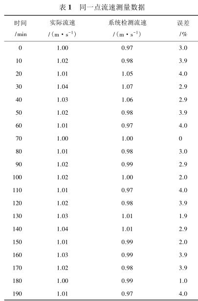 由表 2 測(cè)量數(shù)據(jù)可知,系統(tǒng)在測(cè)量低流速液體時(shí)(流速小于 1 m/s)誤差較大,達(dá)到 5%,當(dāng)待測(cè)液體的流速增大時(shí)(大于 1.4 m/s),誤差逐漸減小,基本維持在 3%以內(nèi)。由此可見(jiàn)系統(tǒng)具有較高的檢測(cè)精度,尤其是當(dāng)管道中的液體流速較高時(shí),系統(tǒng)的檢測(cè)誤差不超過(guò) 3%,達(dá)到了設(shè)計(jì)預(yù)期。