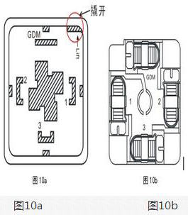 *先將豪斯曼接頭上部的螺絲松開(kāi)拔下接頭部分,接頭部分結(jié)構(gòu)如圖10a所示,從缺口處撬開(kāi)接線(xiàn)端子,接線(xiàn)端子如圖10b所示。