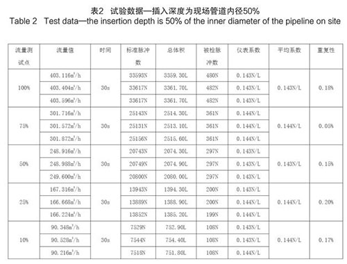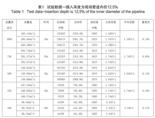 煙氣流量計插入深度為現(xiàn)場管道內(nèi)徑的 12.5%時,試驗(yàn)數(shù)據(jù)如下(以 DN200 為例):