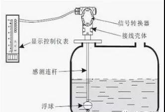 原理: 浮球液位計(jì)結(jié)構(gòu)主要基于浮力和靜磁場原理設(shè)計(jì)生產(chǎn)的。帶有磁體的浮球(簡稱浮球)在被測介質(zhì)中的位置受浮力作用影響:液位的變化導(dǎo)致磁性浮子位置的變化。浮球中的磁體和傳感器(磁簧開關(guān))作用,使串連入電路的元件(如定值電阻)的數(shù)量發(fā)生變化,進(jìn)而使儀表電路系統(tǒng)的電學(xué)量發(fā)生改變。也就是使磁性浮子位置的變化引起電學(xué)量的變化。通過檢測電學(xué)量的變化來反映容器內(nèi)液位的情況。