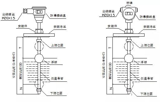 頂裝式浮球液位計(jì)是一種工業(yè)生產(chǎn)中普遍在使用的液位測(cè)量儀表,其安裝方便靈活,具有良好的適應(yīng)性,法蘭式和支架式安裝都可進(jìn)行,可適應(yīng)不同的工況條件。浮球液位計(jì)是以磁浮球?yàn)闇y(cè)量元件,通過磁耦合作用,致使傳感器內(nèi)電阻產(chǎn)生線性變化,再通過智能轉(zhuǎn)換器將電阻變化轉(zhuǎn)換成4~20mA標(biāo)準(zhǔn)電流信號(hào)傳輸,特殊訂制的型號(hào)亦可以疊加HART協(xié)議的信號(hào),*終能液晶方式顯示。據(jù)變送器與顯示器的不同型號(hào),可以現(xiàn)場顯示液位的百分比、4~20mA電流及液位值,此遠(yuǎn)傳信號(hào)可以遠(yuǎn)傳供給控制室,以實(shí)現(xiàn)液位的自動(dòng)檢測(cè)、控制和記錄。頂裝式浮球液位計(jì)適用于石油、化工、電力、輕工及醫(yī)藥等行業(yè)污水處理及各類常壓和承壓容器內(nèi)介質(zhì)液位的測(cè)量,是測(cè)量各類貯罐、地下貯槽的*為理想的液位計(jì)產(chǎn)品。
