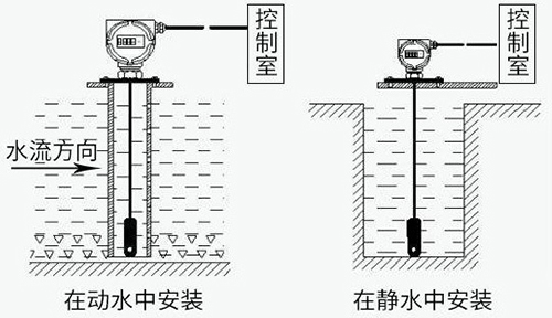 投入式靜壓液位計(jì)(靜壓式水位計(jì))通常投入直徑大于水位計(jì)直徑的的PVC管、鋼管,管道固定在水中,不同高度打若干小孔,以便水通暢進(jìn)入管內(nèi)。或者在底部加裝阻尼裝置,以過(guò)濾泥沙和消除動(dòng)態(tài)壓力和波浪對(duì)測(cè)量的影響。
