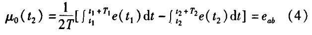dn200分體式污水流量計一般都采用工頻交流電源供電,其電源電壓的幅值和頻率的變化都會給dn200分體式污水流量計帶來電源性干擾噪聲。對電源電壓的幅值變化,因采用多級集成穩(wěn)壓,一般而言電源電壓的幅值變化對電磁流量的測量精度影響不大。當(dāng)電源電壓的頻率波動時,雖然其波動范圍有限,但對dn200分體式污水流量計測量精度影響較大。為了解決工頻干擾問題,實現(xiàn)對流體流速感應(yīng)電勢e柚信號的準(zhǔn)確測量,需利用以下基本關(guān)系:①勵磁周期為工頻周期的整數(shù)倍,即勵磁頻率為50/nHz(n為偶數(shù));②正負(fù)勵磁下的同相位采樣。圖2是對應(yīng)低頻矩形波勵磁形式下的典型電勢信號形式,按上述關(guān)系在一個勵磁周期下,若假設(shè)t。和t:點為工頻干擾的等效干擾點,且采樣寬度T=T1=T2,則e –ab的基本算式為: